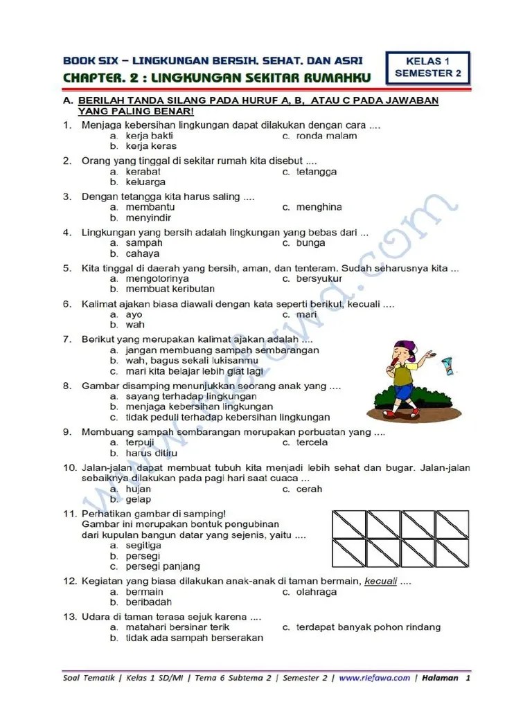 Soal Kls 1 Tema 6 Sub Tema 1 Beserta Kunci / Soal Uts Pts Tema 1 Kelas 6 Semester 1 Kurikulum 2013 Revisi 2018 Juragan Les / Lingkungan bersih, sehat dan asri.